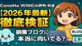 ブログ記事がある程度揃ったら、アフィリエイトリンクを記事に設置して収益化を始めましょう。副業ブログで最初に狙うべき高単価案件はレンタルサーバーのConoHa WINGです。1件あたり5,000円〜10,000円の報酬が見込め、初月から収益を出しやすい主要案件です。